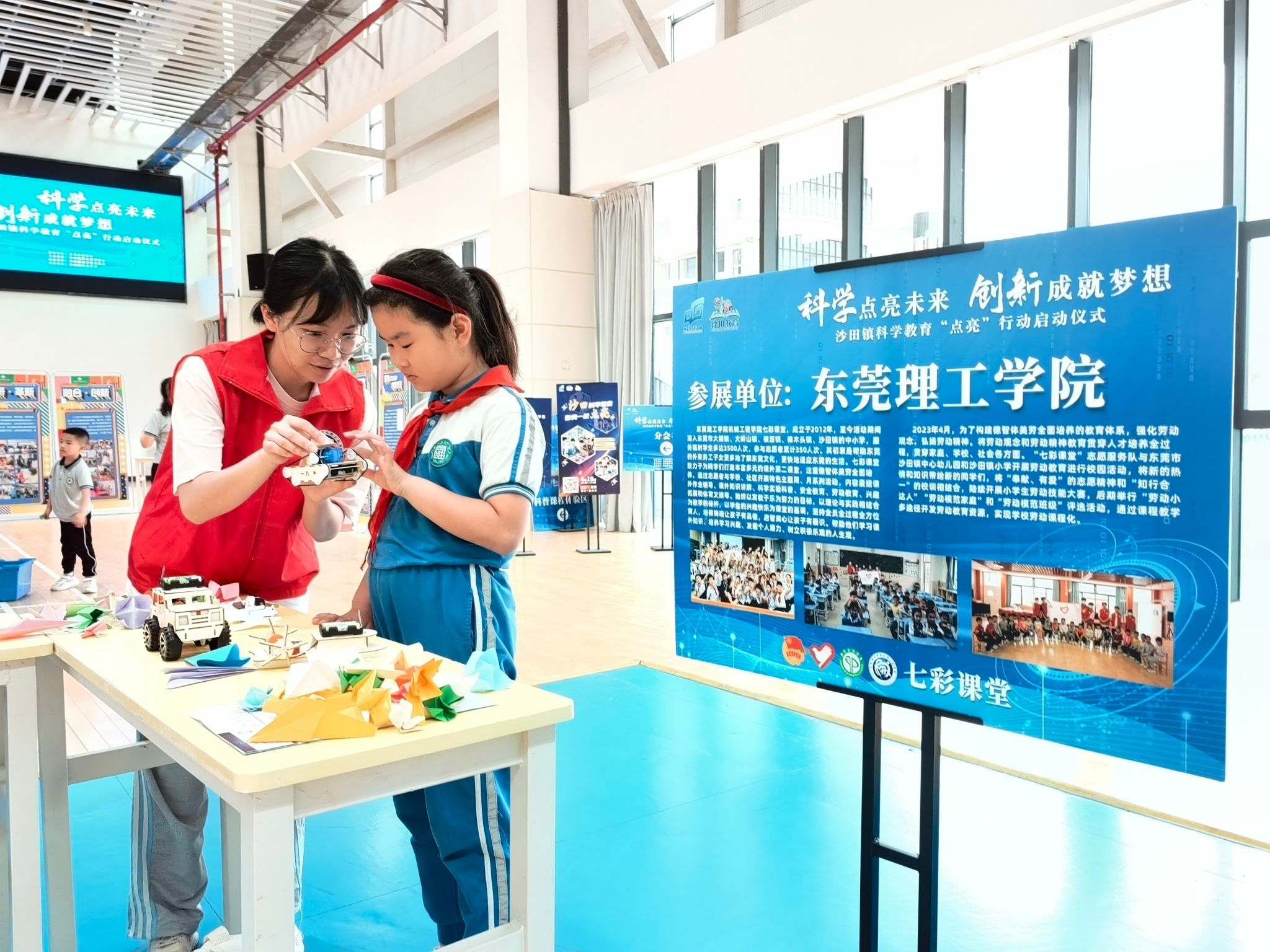 4月18日,伟德国际victor1946“七彩课堂”志愿服务队受邀赴沙田镇中心小学参与沙田镇科学教育“点亮”行动启动仪式。活动以“科学点亮未来,创新成就梦想”为主题,设立校院企联合体验展分会场,着力提升中小员工科学文化素养,完善科学教育工作机制,共促东莞教育高质量发展。