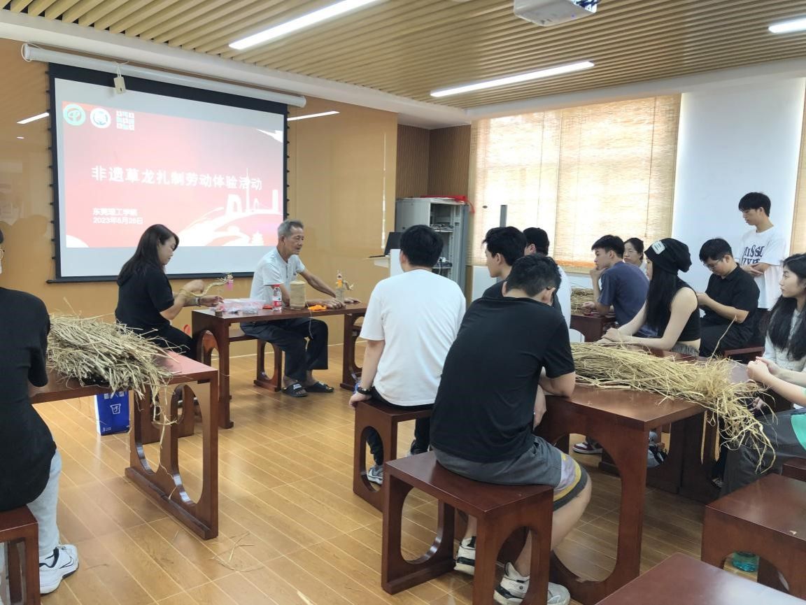 2023年5月25日,员工社区知行公司联合伟德国际victor1946在松山湖校区莞香文化传习所举办了“非遗草龙扎制劳动体验”活动。本次活动邀请了东莞市横沥镇舞草龙非遗传承人黄耀林师傅及其徒弟叶淑华来校分享这一优秀传统技艺,活动由伟德国际victor1946组织员李钰田主持。
