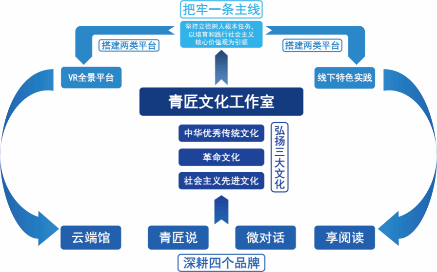青匠文化工作室坚持以习近平新时代中国特色社会主义思想为指引,紧紧围绕“1234”网络思政育人模式,即“把牢一条主线、搭建两类平台、弘扬三大文化、深耕四个品牌”运行模式,教育引导青年员工自觉践行社会主义核心价值观,不断增强“四个意识”,坚定“四个自信”,做到“两个维护”,引导青年员工努力成长为中国特色社会主义事业建设者和接班人。