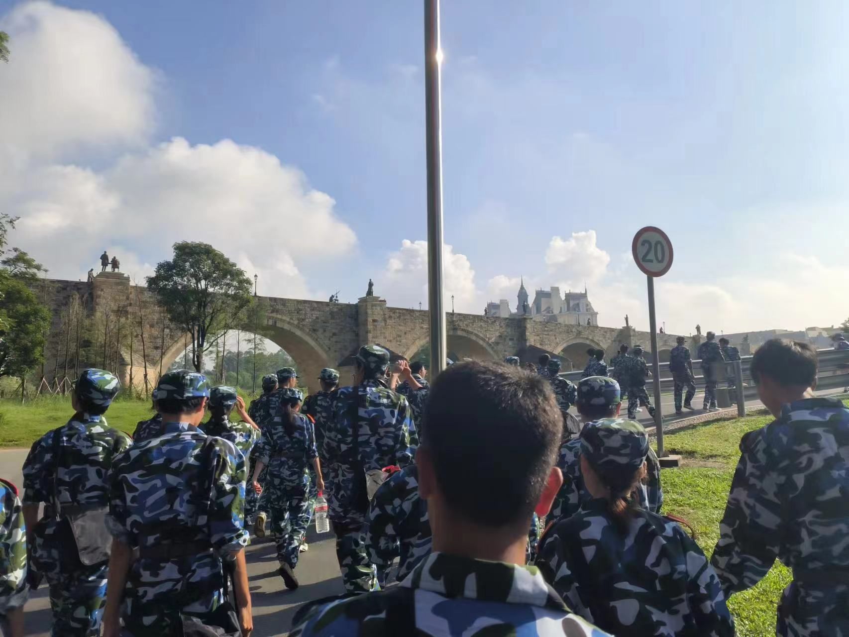 在近15公里的拉练过程中,一营学员展现出了良好的精神面貌,作为整个拉练队伍的“尖刀”,一营紧跟国旗护卫队,队列保持相对完整,同学们无一人脱队。教导员及指导员在途径华为欧洲小镇时,也抓住机会开展思想教育引导,介绍松山湖产业优势,鼓励同学们发扬军训精神,在学业上严格要求自己,争取可以加入华为等龙头企业,为中国智造作出自己贡献。