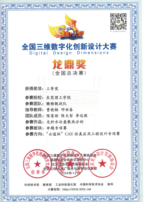 全国三维数字化创新设计大赛“云道杯”CAE仿真应用工程设计专项赛,是第17届全国三维数字化创新设计大赛的一部分。这项赛事由国家三维数字化创新设计大赛组委会主办,被中国高等教育学会列入全国普通高校学科竞赛排行榜赛事。