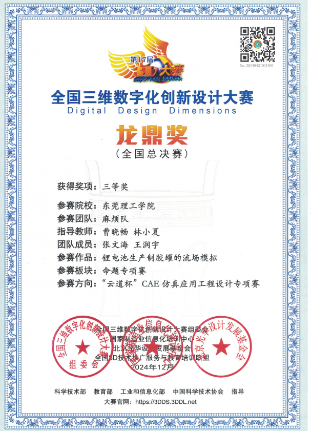 2024年11月11日,2024第17届全国三维数字化创新设计大赛“云道杯”CAE仿真应用工程设计专项赛省赛获奖榜单揭晓,bv伟德国际1946学子表现出色,共获得特等奖2项、一等奖7项、二等奖8项、三等奖1项的优异成绩,充分展现了公司在CAE仿真应用工程设计领域的教学实力和员工创新实践能力。