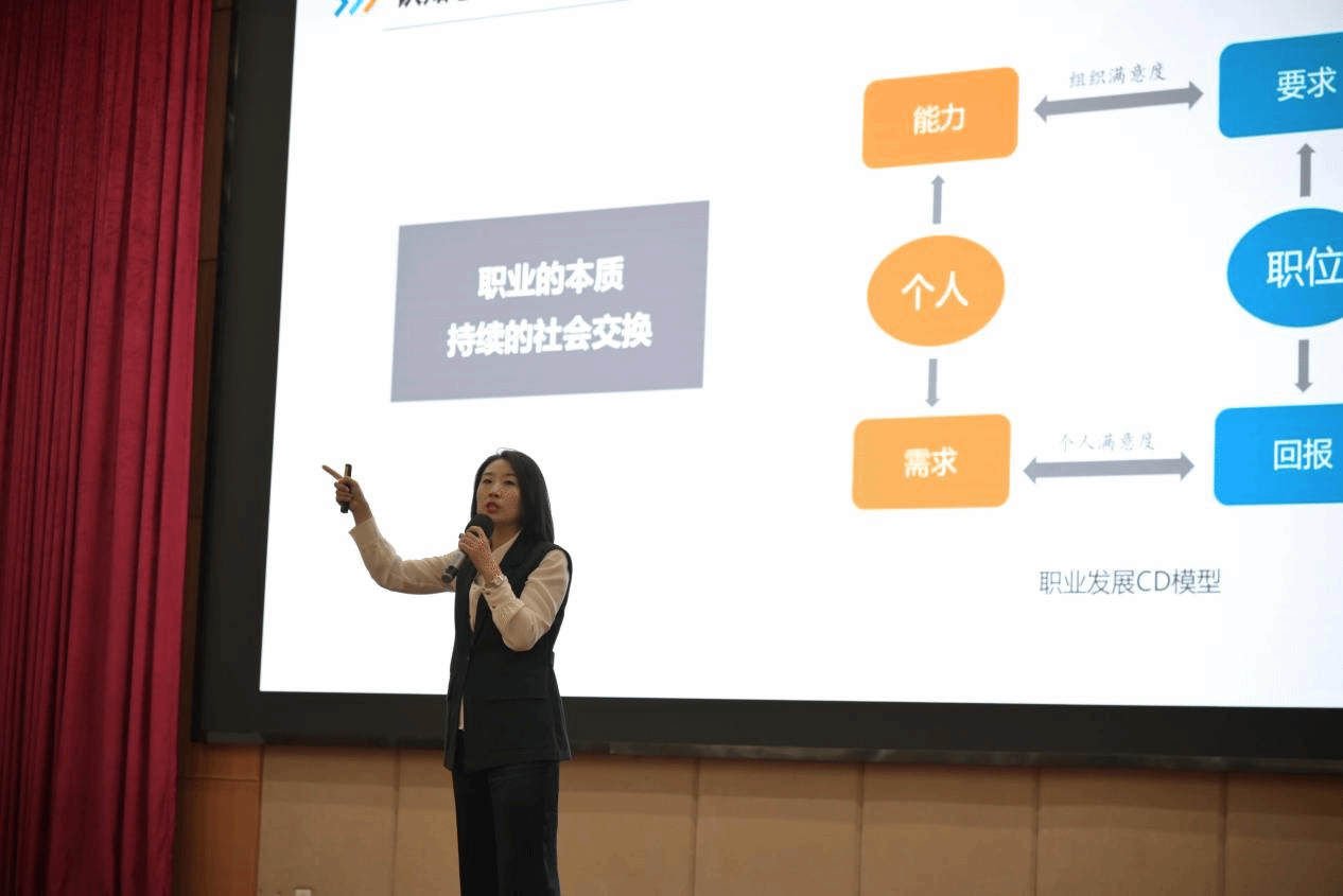 本次讲座邀请了广东科技公司就业与校企合作处王珊老师担任主讲嘉宾。王珊老师凭借其在就业服务领域的深厚造诣、满腔热忱及广泛实践经验,为2024级新生献上了一场既启迪思维又生动有趣的精彩讲座。
