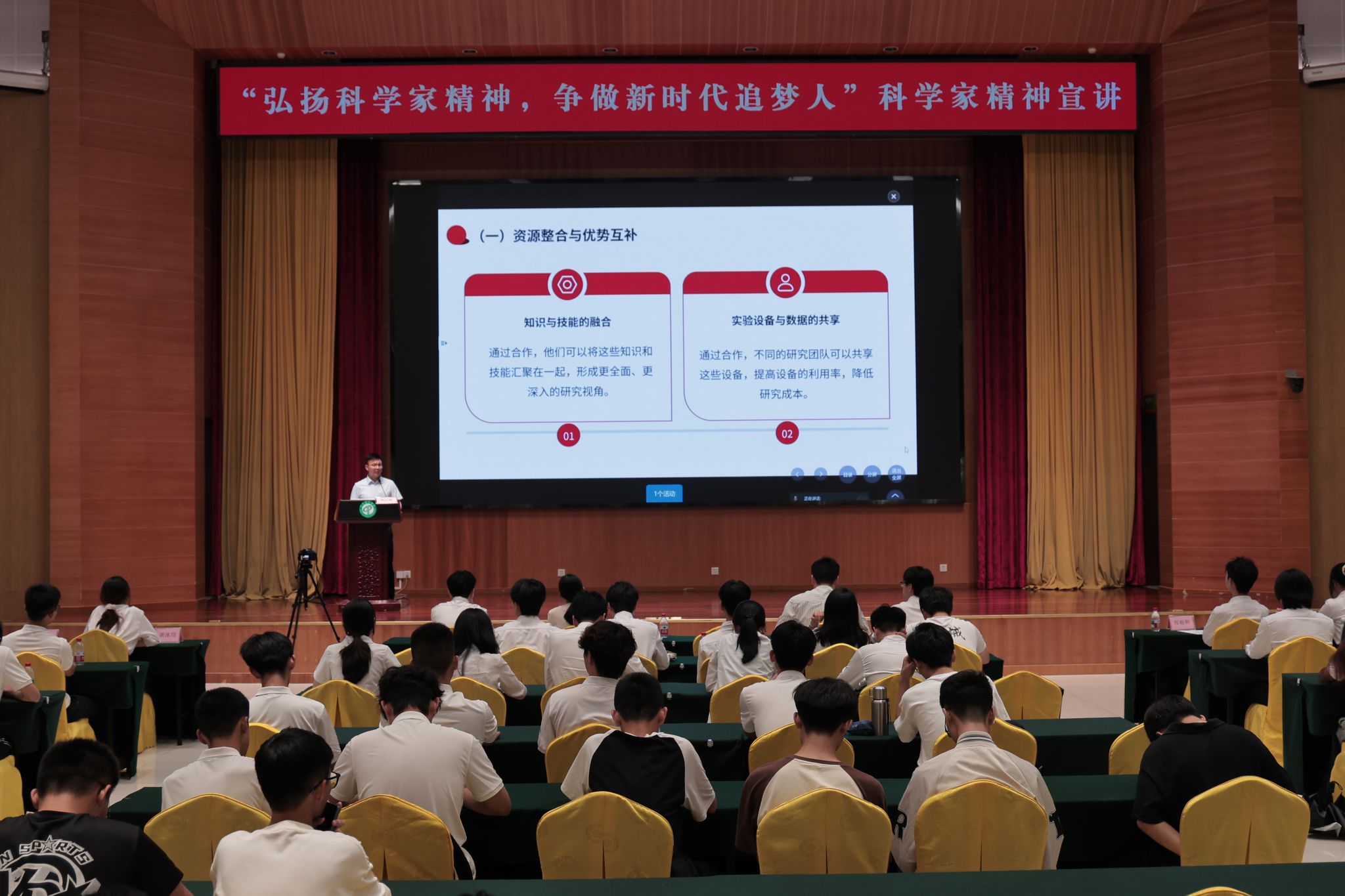 随后,樊红潮详细阐述科学家协同精神的内涵,他以“嫦娥工程”为例,讲解其中体现的跨界融合思维、团队合作精神和国际合作视野,让同学们对协同精神有了更加直观的认识。
