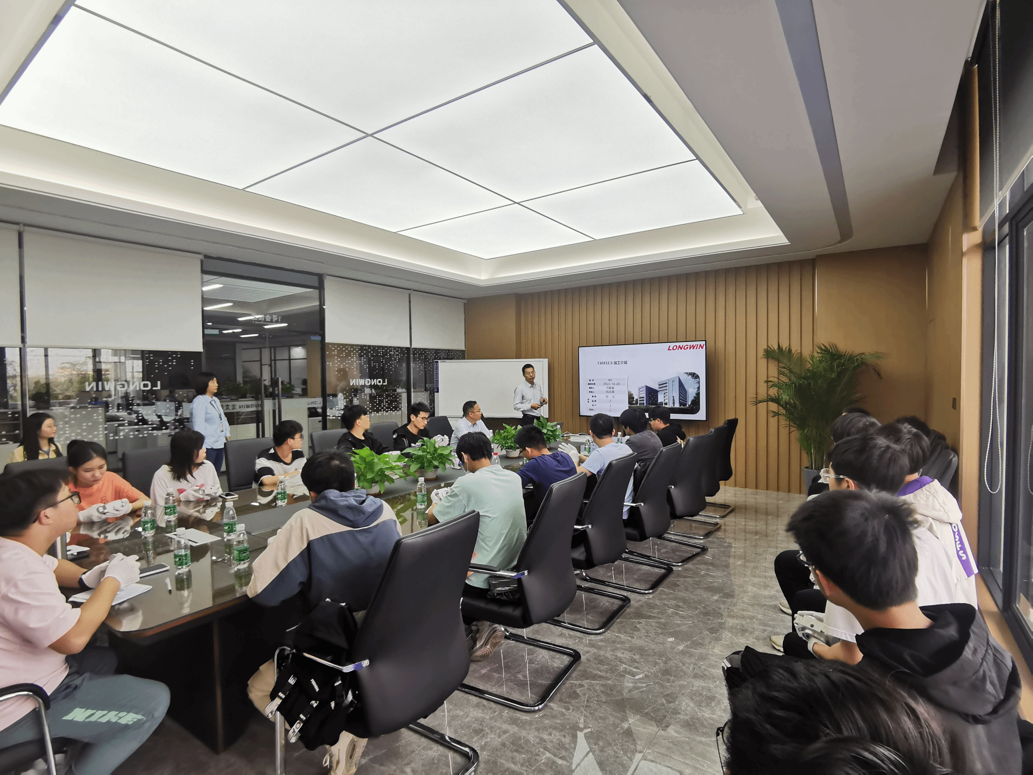 活动开始前,龙文精密制造部余灵霞副总经理对企业的发展历程、主要业务等进行了介绍。随后,龙文精密工程部吴学意经理向学员讲解了课堂作业-零件进行生产工艺,深入浅出地介绍了车铣工艺的流程以及工程图需要注意的细节问题等,并同学们进行现场答疑交流。