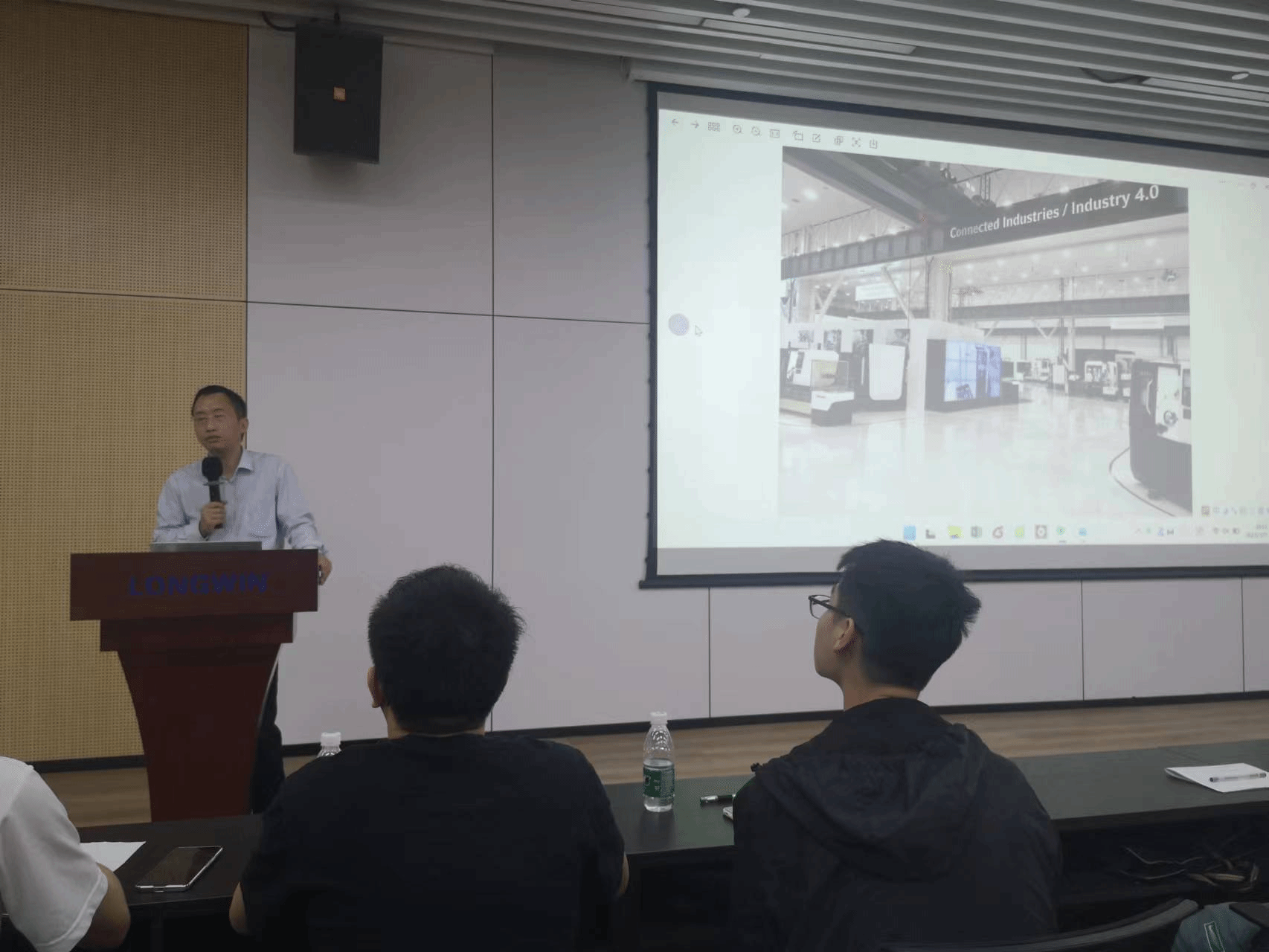 结束了加工车间的参观之后,同学们就来到了会议室进行课程内容的回炉学习,在课堂上,曹晓畅老师给学员们带来了机械制图标准课程,重点介绍了图样的特殊表示方法、现行的制图国家标准等内容。在交流环节,还与企业的工程师进行技术交流。课程后,黄文甫结合自身丰富的企业生产经验与同学们分享他的从业心得,鼓励同学们需要不断地进行技术创新,努力追赶技术的高峰。