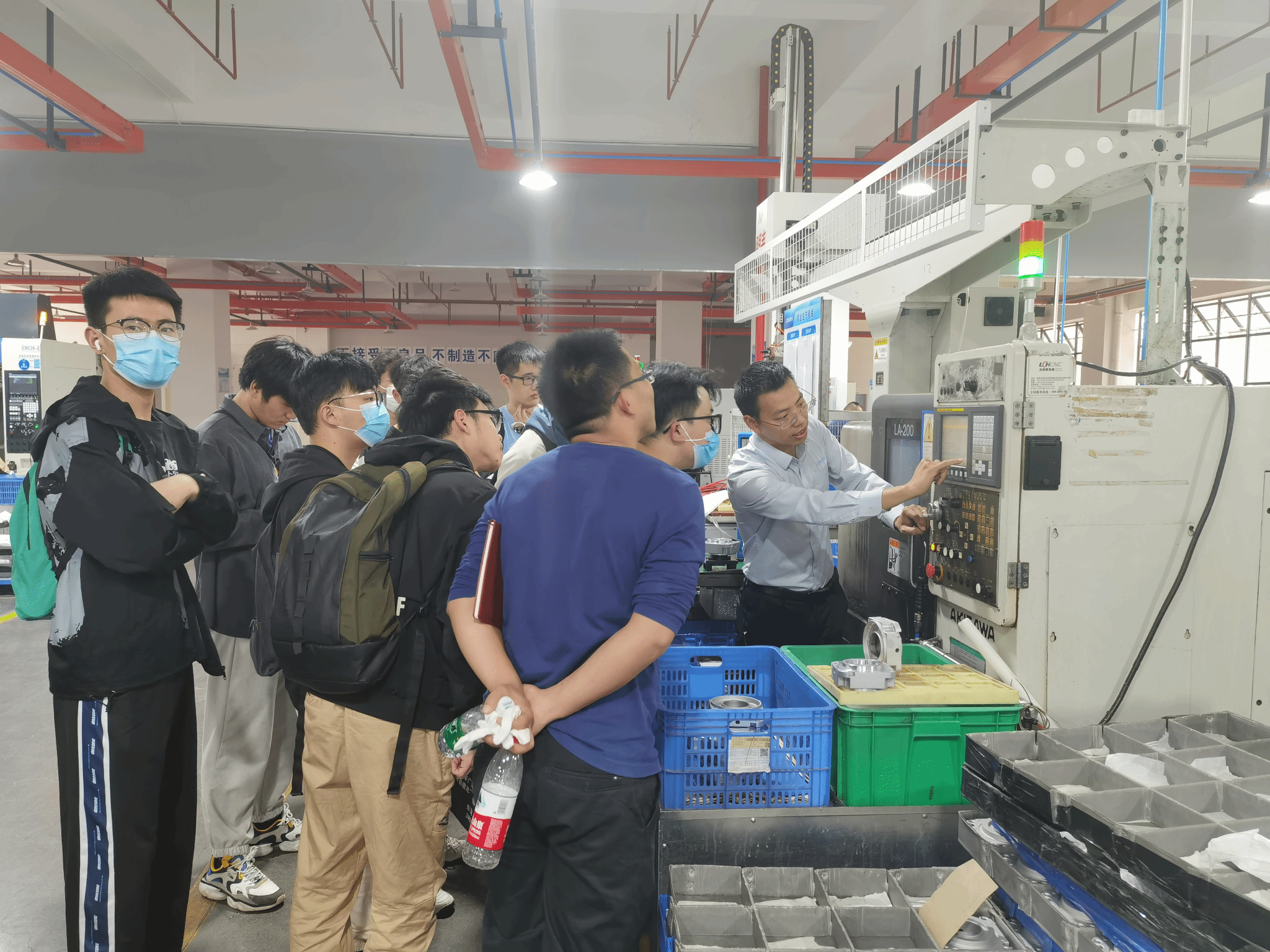 在理论课程后,在吴学意带领下,学员参观了龙文精密压铸车间、数控车、铣车间等生产场所,在参观的过程中,与同学们深入交流,并现场演示产品装夹以及刀具安装等生产过程,使同学们直观感受到零件的实际加工,让同学们对产品的加工工艺有了更进一步的了解。