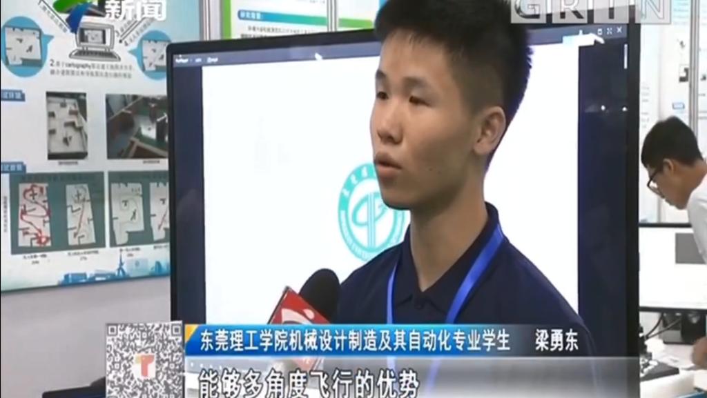 本次竞赛也是对机械公司立德树人效果的一次检验。10多名教师在现场尽心指导,40多名员工在现场相互协作,奋进齐心。特等奖作品“应用于复杂地形的无人机和无人车协作导航系统”吸引到广东电视台的关注报道。面对镜头,团队负责人梁勇东从容不迫、娓娓道来,展现了新时代机械学子的风采。