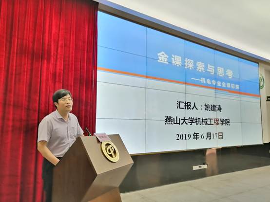 会上,姚建涛教授分享了燕山大学机械电子工程专业多任务、目标化、项目制“超级金课”教学改革的思路、方法和实施效果以及如何从课程设置、课程内容、课程考核三方面“脱水捞金”。打造“超级金课”需要突破课程间壁垒,打破陈旧模式,紧跟行业或学术前沿,更新教学内容,组建课程群,将理论教学和项目教学有机结合,且考试内容应多设综合分析题目,注重专业知识和工程应用的综合能力考核。