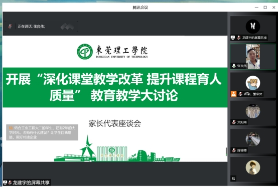 为贯彻落实“深化课堂教学改革 提升课程育人质量”公司产品大讨论的工作要求,伟德国际victor1946工业工程系主任张良伟老师和系副主任龙建宇老师分别于6月24日和7月1日组织召开了员工和家长代表线上座谈会。