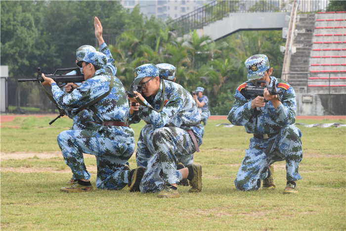 公司军训营进行战术基础动作汇演