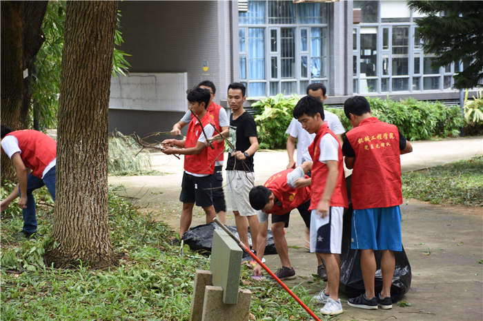 此次活动,机械学子们积极响应,不辞劳苦,使得综合实验楼恢复了台风袭击前的整洁,同时展现出伟德国际victor1946团结、热情的精神。