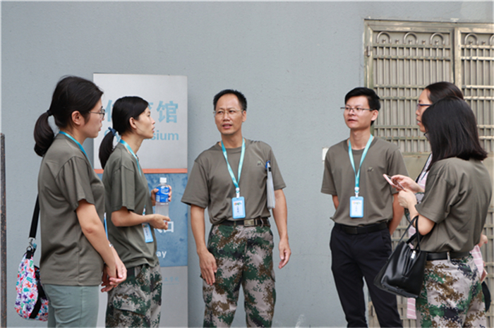 8:30,机械团学工作人员准备摆摊物质。到了10:00,由教官带队到体育馆后方。活动过程中,党总支副书记陈举铭,辅导员老师肖毅、李钰田、黄楚刁、姜雄华、陈凤宜巡视新生军训情况及慰问新生们。