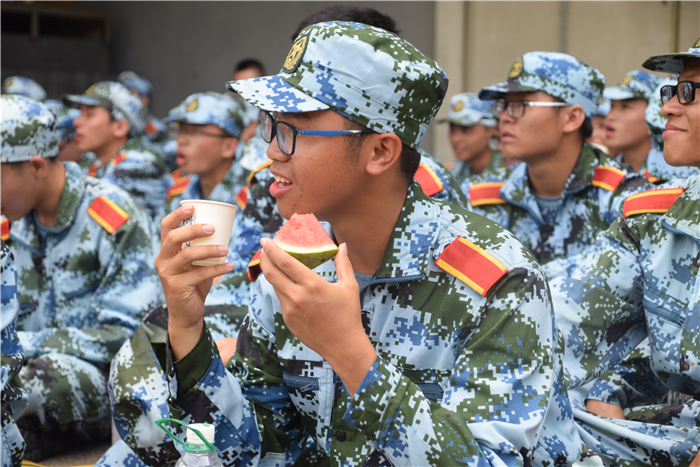 在领导、老师和同学们聊天的间隙,工作人员将已准备好的西瓜与饮料分发到他们手上,一切都井然有序的进行着。