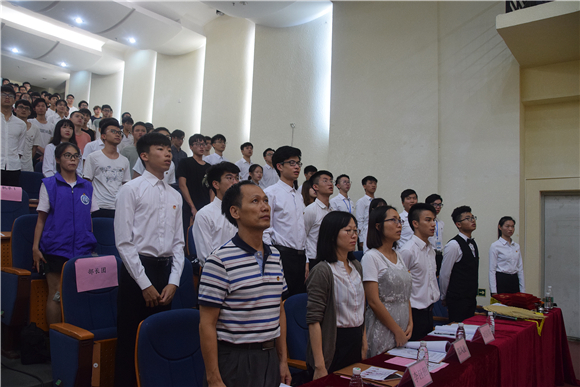 肖毅老师主持第一次全体会议。首先是全体成员起立奏唱国歌,然后颁发伟德国际victor1946优秀团员、优秀志愿者及团学优秀部门,紧接着由党总支副书记陈举铭老师讲话。陈举铭老师表示本次大会是本院政治生活中的一件大事,对新一届的员工代表表示美好的祝愿,并且对大会的召开以及获奖的同学和部门表示热烈的祝贺。