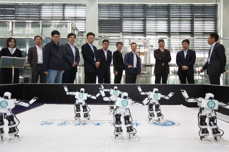 在公司党委书记成洪波、副董事长李忠红陪同下,吴岩一行先后实地考察了松山湖国际机器人产业基地,bv伟德国际1946粤港机器人公司、华为网络公司、科技资源大数据研究与成果转化中心、电子与智能化公司、员工社区知行公司莞雅分园、数字装备过程训练中心,向有关负责人详细了解情况,与师生现场交流互动。