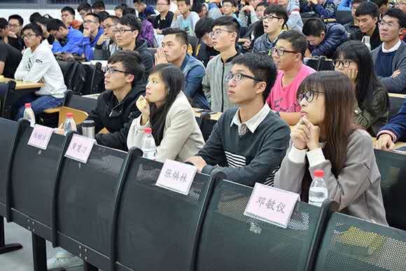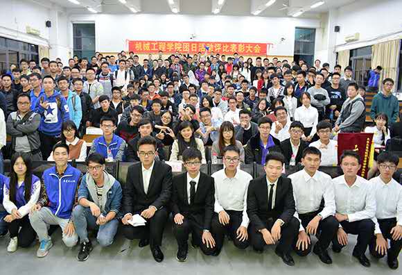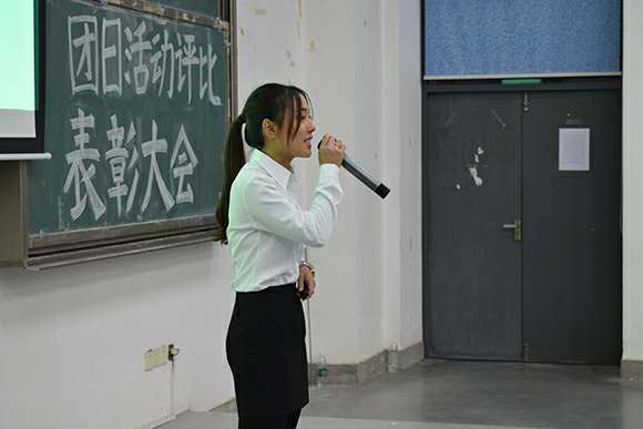 会前,主持人许家玮引领现场同学向黄楚刁老师献上生日祝福。而后,主持人宣读了初评成绩及评分规则,大会正式开始。各班团支书用PPT展现自己班的团日活动。其中机械设计制造及其自动化4班与外校进行的三班联谊引起在场观众的羡慕。在中场休息时,各班喊口号的加油活动,一声声激昂有力,振奋人心,现场气氛热血沸腾。展示完毕,黄老师上台点评。她感谢同学们给她带来一场别致的生日会,随后浅谈了各班团日活动的意义。在点评中,黄老师提出同学们要意识到班集体的重要性,且行且珍惜,自主学习并掌握技能,多组织与自身专业、服务与回馈社会为主题的活动及发展个人特长的文体活动五个要求。
