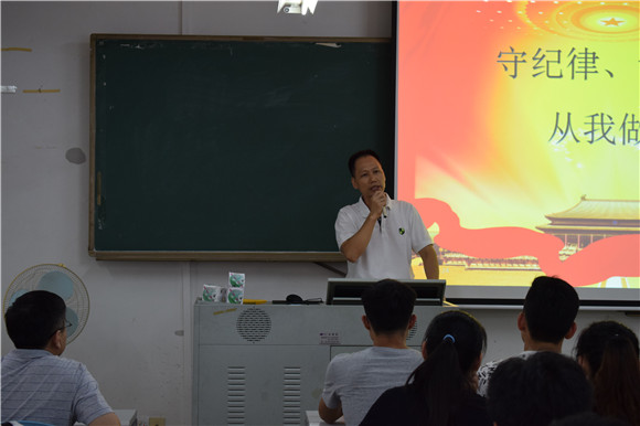 大会伊始,肖毅老师简要介绍本次大会的主要内容。在讲学风建设与纪律教育时,陈举铭老师从长征精神中体现出来的三大纪律与八项注意以及红军严格遵守纪律的军队作风对与会同学提出严格遵守纪律,加强学风建设的要求。陈举铭老师认为唯有建设好的班风,才有好的学风,才有好的校风,从而建设高水平理工科大学。在老员工如何守规矩,讲纪律的问题上,陈举铭老师认为遵守纪律是一种态度,公司制定纪律是为了同学们养成好的习惯。期间,陈举铭老师让在座同学进行一分钟的闭气测试,让同学们意识到锻炼身体的重要性,同时让同学们多跑步,多读书,希望同学们从跑步与读书中学会知行合一。最后,钟守炎教授指出公司在9月中至10月中旬开展学风建设活动并就员工手册的内容再次强调学风建设的重要性,对个别同学迟到、早退、旷课情况,希望他们端正学习态度,同时希望在座班委和党员要敢于担当,起引领作用。