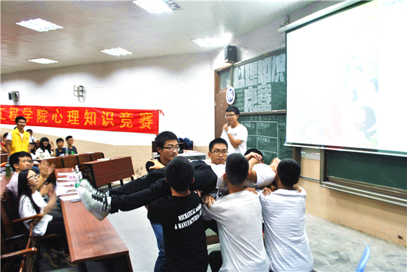 在“我型我秀”中,各队都通过不同的表演来展现自己,有令人捧腹的《百变小樱治疗记》,催人泪下的《雨的故事》,普及心理知识的PPT——《替代性心理创伤》、《神奇的心理学》、《人的情绪——海格力斯效应》、手语《感恩的心》,还有亲友团简短的街舞秀。经过接下来四个环节的答题,暖男知你心队脱颖而出获得冠军,获得亚军的是心灵之翼,季军——机智的机四。我说啥都队、鸡心队、大部队均获得了优秀奖。