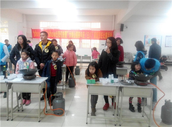 参赛小组都签到完毕后,活动主持人便拉开了“三八”烹饪比赛的序幕。分配到小组的志愿者携着小组家长所准备食材的纸条,带上小组的小孩子去到附近的市场购买菜肉。买菜归来后,小孩子迫不及待地领着家长前去洗菜室,用菜盘盛水给蔬菜洗刷,乐此不疲。家长们祥和地看着认真洗菜的孩子们,脸上露出满足的笑容。洗完菜后,参赛小组都回到各自的厨位,开始精湛的厨艺展示,引得在旁参观的人群由衷的掌声。最后,各参赛小组进行菜式解说展示,并相互品尝后投票出心目中前三甲。社区工作人员统计得分并公布获奖小组名单,并让活动全体人员合影留念。