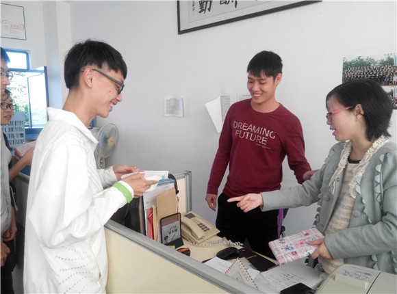 当志愿者把爱心饺子煮熟并妥当地打包好后,就心满意足地亲自递到要感恩的人手中,收获到欣慰的笑容。其中更有敬爱教学老师的志愿者把暖热的饺子及DIY笔记本递送给正在岗上为员工教育工作而辛勤劳作的经理及辅导员老们。教师们愉悦品尝了带来的感恩美食,和员工一起甜美微笑,共享乐氛。