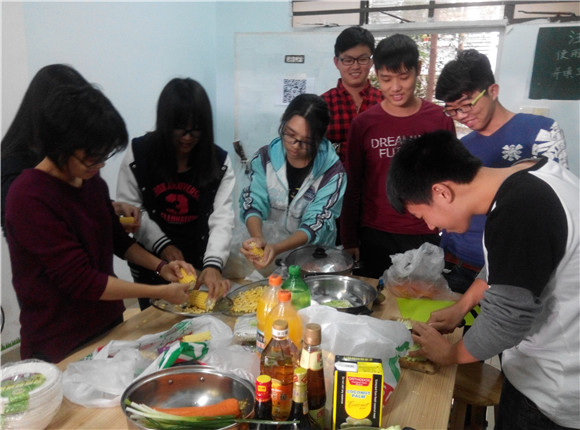 中午时分,天气虽冷。志愿者们满怀热情地来到莞逸社区活动中心,手里都提着大小不一的盛菜袋子,火热朝天般筹备着包饺子的素材——饺子皮、卷心菜、胡萝卜、鸡蛋以及各种各样的调味料。凭着彼此之间的默契,志愿者们分工协作,有的人洗盘,有的人切菜,有的人拌陷,还有的娴熟地包起饺子来。另外还有一些文艺的志愿者在DIY手工制作感恩专属的笔记本。整个场面有条不紊,其乐融融。