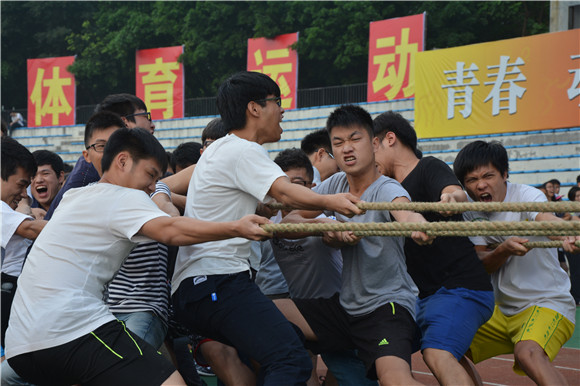 来到比赛的第二天,同学们的热情更加高涨。各个项目也不断传来喜讯,其中跳高项目更是有一米八五的记录。当天进行的团体项目有骑毛毛虫竞速、运转乾坤、扛大球和百人拔河,其中最刺激的莫过于百人拔河。公司过关斩将,获拔河第五名。
