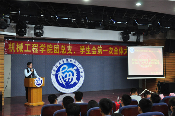随后,团总支副书记、员工会主席辛钦泰上台为大家做工作展望,辛主席充分肯定了团学在过去一年取得的骄傲硕果,同时寄望在新的一年里团学能够以“一个中心,两个结合,三项服务”为核心,在学习、生活等方面更好地服务机械的每一位学子。而后,前任主席韩旭就“感受,感情,感恩”三个关键词分享了自己在团学三年的感触,希望每一位干事能够用心感受在员工工作中的苦与乐,珍惜与每一位同伴相处的的感情,用心去感悟,同时更要学会感恩,感恩每一个人每一件事。最后,肖毅老师从员工会的起源引出作为团学一员应本着一颗奉献的心为人民服务,为本公司的每一位员工服务,并且要求每一位干部和干事做到行动跟心走,拓宽思路,积极创新,在团学这个大家庭中用心去发现适合自己的工作并能学有所成。