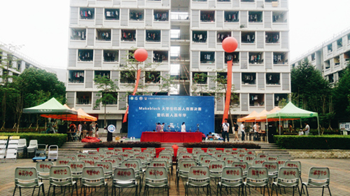 Makeblock老员工机器人竞赛在前面两个星期分别在松山湖和莞城校区进行了两轮比赛,141支队伍(600名参赛选手)经过激烈的比赛后成功晋级6支队伍,晋级队伍齐聚员工公寓广场进行最终决赛。比赛环节包括,组装机器人、编程、赛道行走,在赛道行走环节中,主办方在赛道上设置了若干障碍以及加分减分赛道,为本次比赛增加了不少难度与趣味性。晋级队伍从容不迫的进行赛道观察与零件检测,在主持人的一声令下,晋级队伍马上进入比赛状态,队员们互相帮助、分工合作,力争节省时间取得好成绩。组装好、输入编程的机器人并不能直接投入赛道中进行比赛,机器人还需要经过不断的调试与修改才能进入赛道。现场人潮涌涌,为避免观众打扰选手们比赛,工作人员有序的进行了人员疏选。选手们的每一次成功都引起观众们的欢呼,每一次跌倒,观众们都会在旁加油助威。