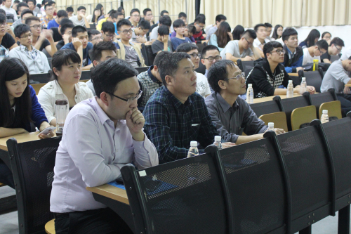 余任冲讲师上台向同学们讲述了现在机器人的运用情况和未来的发展趋势。并通过视频让同学们了解机器人,激起同学们对机器人方面的兴趣,鼓励对机器人这方面有兴趣的同学可以报名参加培训,尽可能地发掘自己的潜能。