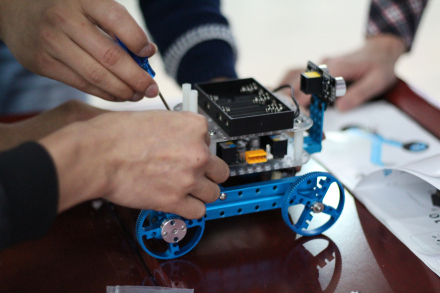 本次竞赛分别在松山湖和莞城两个校区进行,于4月9日和11日完成。本轮比赛是拼装赛,分为三个环节:第一是拆分和检查零件环节;第二为组装环节;第三是组装完的小车走直线环节。在比赛中,每个队伍都使出浑身解数,积极努力地互相配合队友。