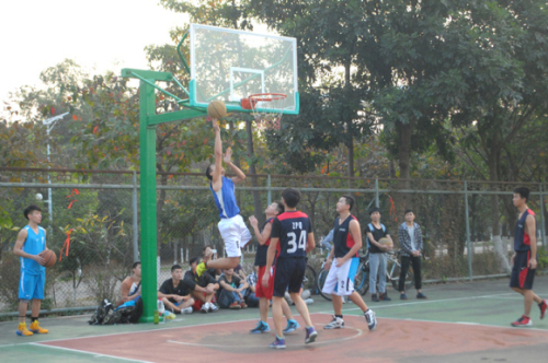 比赛伊始,12级机械设计3、4班联队和11级工业设计1班的球员迅速进入状态取得领先优势。但是12级机械设计1、2班联队和13级机械设计2、4班联队的球员并不气馁,稳打稳进。在第四节将分差拉近至几分,将比赛推向白热化,球员的每次进球都引起同学们的呐喊。观众更是为自己支持的队伍加油助威,现场气氛达到最高潮。