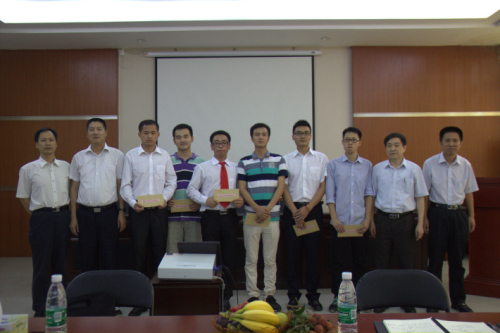 大会伊始,黄楚刁老师表彰2014届成功考取硕士研究生同学名单,并由书记钟守炎颁发奖学金。经理表扬了这次奖学金获奖者,并表达了对下一届考研生的期望。