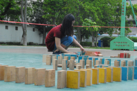 比赛精彩进行中,场边的观众看得津津有味。评比环节,观众的心和参赛选手一道随骨牌的前进而起伏,在关键的时候捏一把汗,在成功之时报以热烈的掌声。
