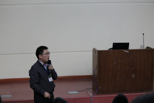 开幕式结束后,现场紧接着进行金欣、王建军、尹荣造三位嘉宾专题讲座环节。三位嘉宾与同学们分享了各自对机械领域的理解和成功的经验;希望同学们通过机械创意设计节加深对机械专业的理解,学到更多机械知识,鼓励同学们注重机械专业的知识同时,更要跨领域全面发展,从而更好地适应机器人时代。其中尹荣造先生更是通过献唱、演说的方式为同学们讲解梦想与追求的重要性,并相信同学们活跃的思维与澎湃的激情能够实现“中国智造”这个梦想。精彩的讲座在同学们的掌声与欢呼声中结束。