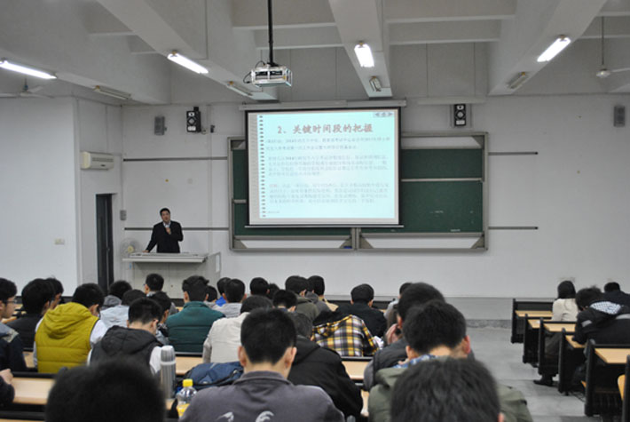 此次动员大会由党总支副书记陈举铭主持。田君副经理以自己亲身经验指出:2011级的同学们即将面临着就业、考研、出国留学、创业等机遇与挑战;勉励同学们要明确奋斗目标,提前做好准备;并鼓励同学们积极考研,进一步提高自身素质,走向更高的舞台,提升将来就业优势地位。同时表示伟德国际victor1946也会从环境、团队、考研复习资料为同学们提供便利,希望同学能把握这稍纵即逝的机会。紧接着,田君副经理详细地从考研基本情况、如何把握考研关键时间段、考研复习方法三方面展开介绍,使同学们对考研有了更深入的了解。