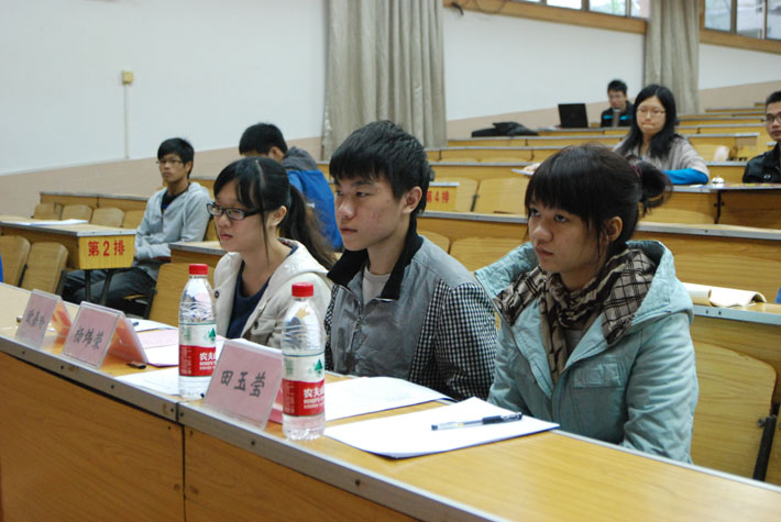 其中一场比赛在“舌神队”和“一口爆队”之间展开。经过双方辩手新颖、诙谐的自我介绍后,正方一辩从生活中例子出发,表示人生就该有目标、为社会作出奉献,从而提出“人生贵在有成”的观点。而反方一辩则通过列举名人例子过分追求有成的反例来否定对方观点,并提出“人生贵在适意”的观点。比赛中,辩手们引经据典、旁征博引,凭借他们灵活的思维和严密的逻辑赢得场下阵阵掌声。一番唇枪舌战后,杨炜荣师兄和田玉莹师姐指出了辩手们的优点和不足,并给出了他们的意见,期待他们在决赛中能有更好的表现。