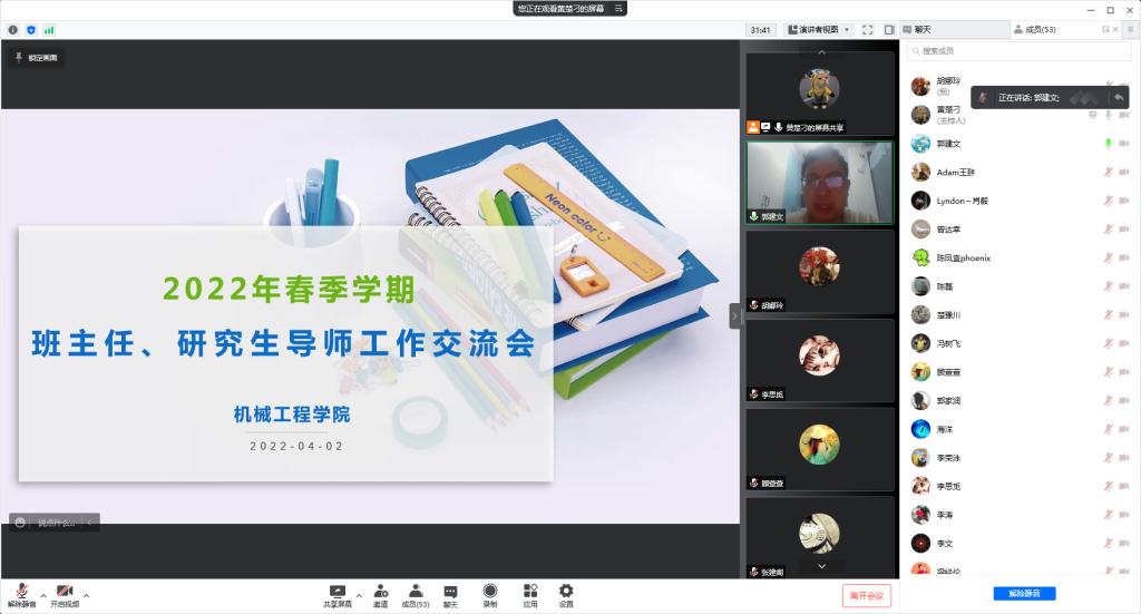 4月2日晚,伟德国际victor1946通过腾讯会议召开2022年春季学期班主任、研究生导师工作交流会。全体班主任和研究生导师代表参会。