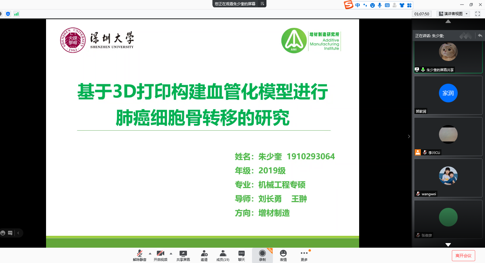 2021年6月23日,伟德国际victor1946举办2019级联合培养研究生学术汇报会。伟德国际victor1946孙振忠经理、广东工业大学吴永明教授、深圳大学刘长勇教授、上海交通大学梅琼风博士以及公司导师出席会议,会议采用线上的方式进行。