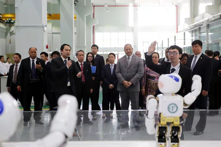 (汤加王国国王参观伟德国际victor1946并观看员工操作机器人表演)