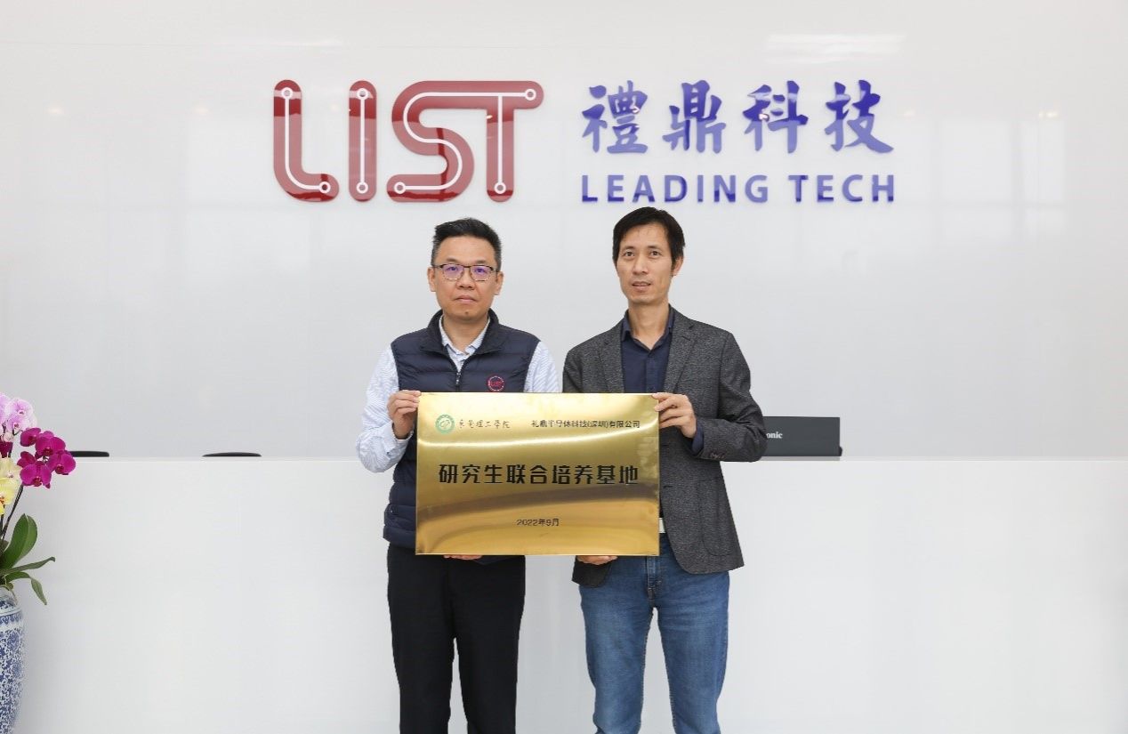 在活动现场,郭建文与李筱萍代表校企双方签订了“教学实习基地”协议,曾达幸经理授予礼鼎科技半导体“bv伟德国际1946研究生联合培养基地”牌匾。
