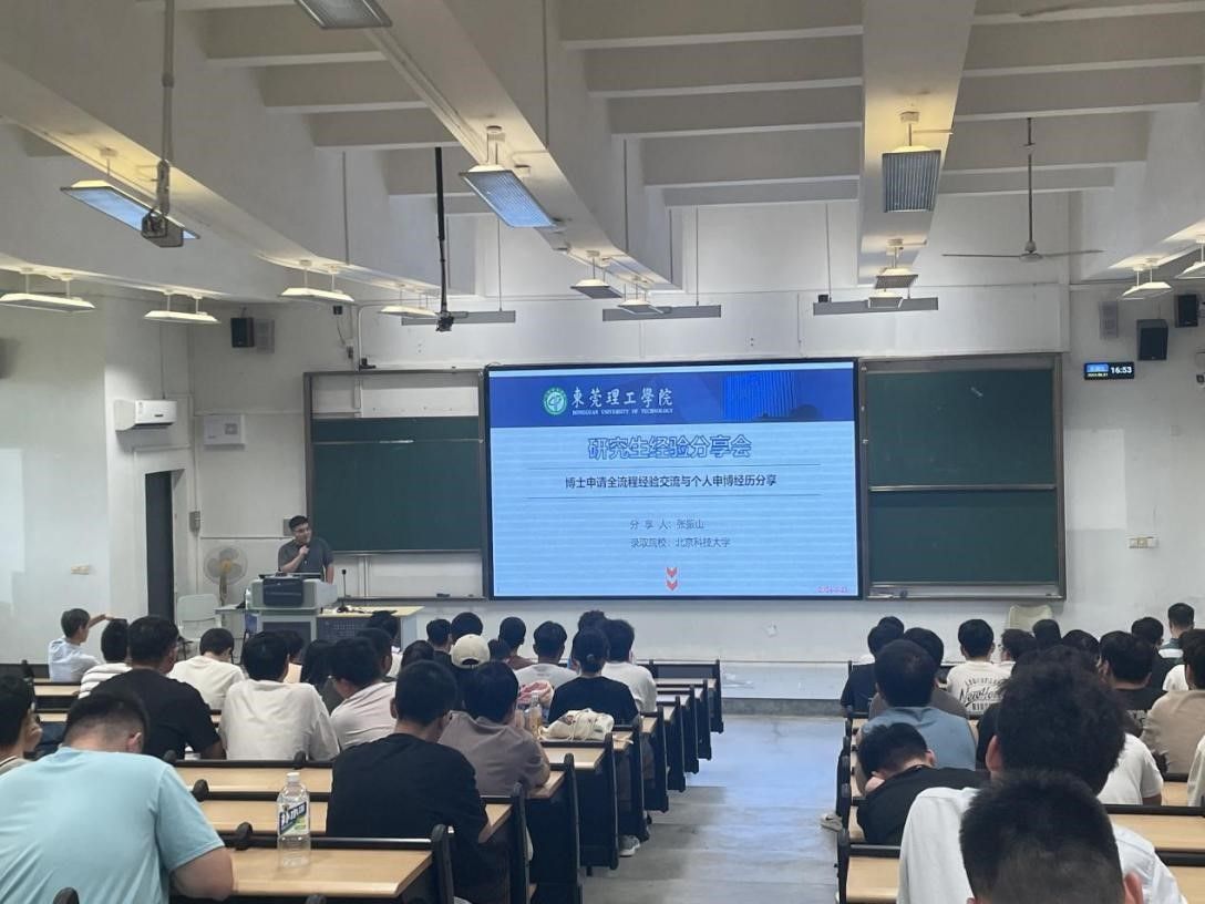 张振山结合自己北京科技大学的申博经验,分享了选择导师、准备申请材料以及面试等方面的经验,对于博士申请考核制度进行了详细梳理,并提醒师弟师妹们要提前规划、早做准备,提前做好攻博计划,根据不同公司的报考条件及时查缺补漏。并从论文撰写、前期准备、表达能力等多方面总结了申请考核制度下的注意事项。