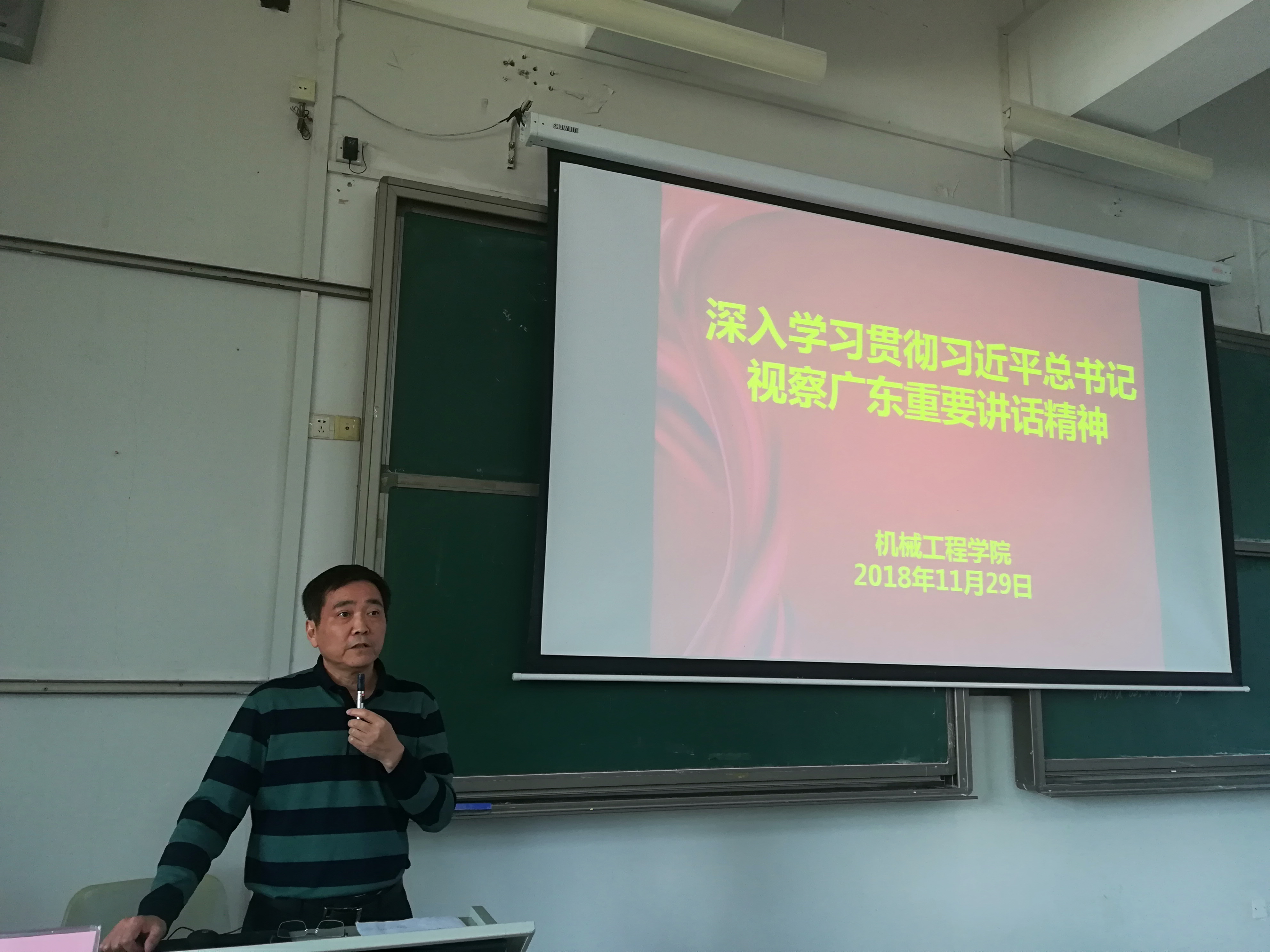 2018年11月29日下午,伟德国际victor1946在教学楼6E206组织召开习近平总书记视察广东重要讲话精神专题学习会,参与人员包括全院教职工和员工党员。会议由党总支书记钟守炎主持。