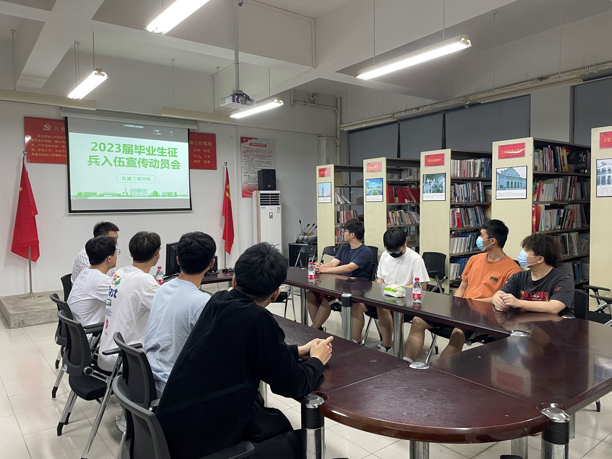 会上,与同学们共同观看了征兵公益宣传片。通过简短的宣传视频生动的展示了军旅的热血生活,极大地鼓舞了同学们应征入伍的积极性。郭家润围绕参军入伍的条件、入伍流程和相关优惠政策等几个方面进行了详细解读,深刻剖析了毕业生应征入伍政策的优越性,使同学们对政策认知和入伍条件了然于胸,也引导同学们拓宽思路,合理规划个人职业生涯,积极投身国防事业,为征兵工作顺利开展奠定良好基础。