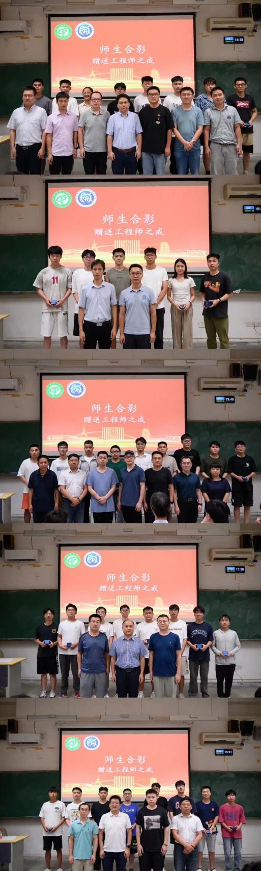 随后,导师们为每位新生颁发了象征荣誉和责任的“工程师之戒”。这一环节象征着新生们正式迈入了机械的学术殿堂,承担起未来科研学术的使命和责任。