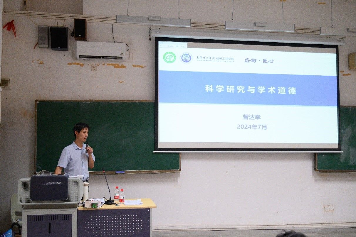 最后,曾达幸副经理解读了公司产品方案,并重点介绍了科学研究与学术道德的相关内容。通过详细的解读和案例分析,新生们深入了解了研究生阶段的培养目标、课程安排、科研要求以及学术道德的重要性。