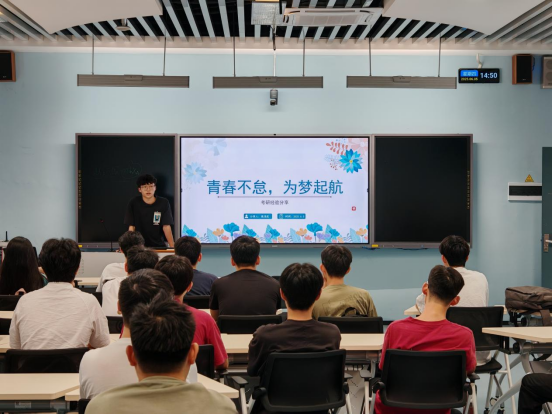 随后,廖伟豪同学结合自己备考广东工业大学的经历,深入剖析了笔试各科目复习要点。他强调,数学作为考研的拉分学科,要注重基础知识的夯实,通过大量有针对性的习题训练,提高解题能力与思维敏捷度;陈伟柠同学聚焦北京工业大学的面试经验展开分享。他提到,面试前需精心准备个人简历,突出本科期间的科研项目、竞赛经历以及专业技能,让导师能够快速了解自己的优势与潜力;高泽武同学以深圳大学为例,分享了自己在考研全程的时间规划。从基础阶段的知识积累,到强化阶段的查缺补漏,再到冲刺阶段的模拟演练与心态调整,每个阶段都有明确的目标与任务;陈梓涵、曾令辉同学则从自身实际出发,分享在本校读研过程中体会与科研经验,鼓励学弟学妹们在面对压力与挫折时,要坚定信念,相信自己的付出终有回报。