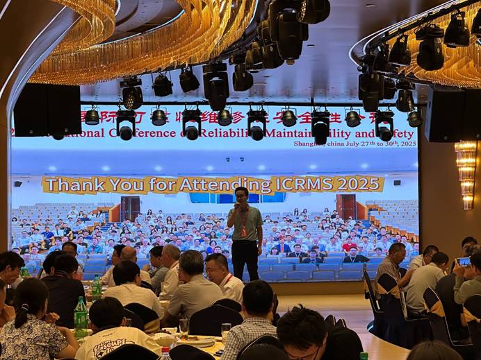 2025年7月26日至30日,第十六届国际可靠性、维修性与安全性会议(2025 International Conference on Reliability, Maintainability and Safety, ICRMS 2025)在上海隆重举行。bv伟德国际1946作为本次会议的联合承办单位之一,深度参与了大会的组织与学术活动。ICRMS是由中国现场统计研究会、中国电子学会、中国机械工程学会、中国仪器仪表学会、中国兵工学会、中国宇航学会、中国航空学会共七家国家一级学会共同发起,是亚太地区历史最悠久、规模最大、级别最高、影响力最深远的质量与可靠性领域国际学术盛会。本届会议以“质量可靠性新技术 助推新质生产力”为主题,吸引了海内外众多知名学者与专家齐聚一堂,如图1所示。公司伟德国际victor1946副经理龙建宇及工业工程系主任张良伟代表公司参会。会议期间,龙建宇副经理应邀在大会Academic Dinner上致辞(图2)。