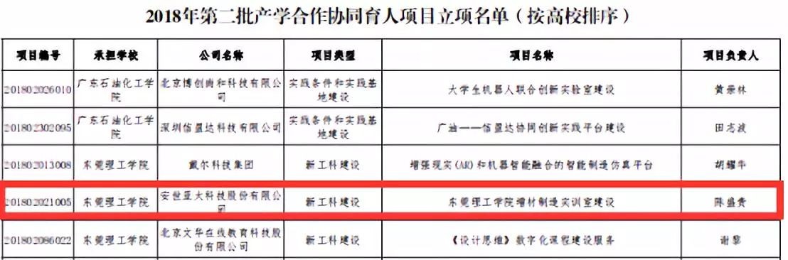 类型一 近日,教育部发布《教育部高等教育司关于公布有关企业支持的2018年第二批产学合作协同育人项目立项名单的函》(教高司函〔2019〕12号)文件,公司伟德国际victor1946工程实践教育中心陈盛贵老师获批2018年度第二批产学合作协同育人新工科建设项目《bv伟德国际1946增材制造实训室建设》。