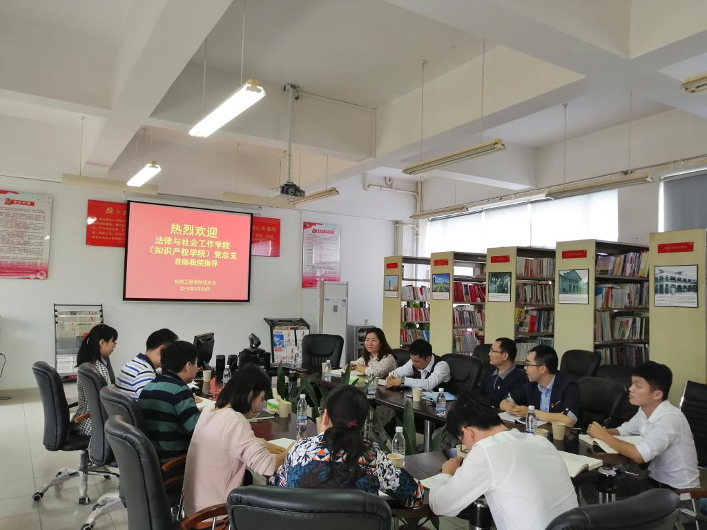 2019年3月20日下午,法律与社会工作公司(知识产权公司)(以下简称“法社公司”)党总支书记杜应发带领法社公司一行5人来公司就党建、员工思想政治工作等进行了交流座谈。座谈会在机电楼12A204会议室进行,出席人员包括公司党总支书记钟守炎教授、副书记陈举铭、党建组织员李钰田及全体员工辅导员等。